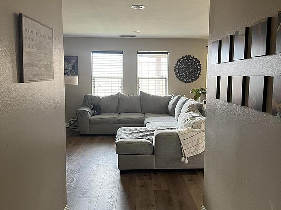 Must see beautiful West Lancaster home! Primary bedroom on opposite side of other two bedrooms. Open concept kitchen, dining room and family room. Indoor laundry room. Water saving landscape front and back. Backyard has artificial grass. Awesome back patio with seating area and built in fire pit. Home also offers paid off solar! Come see this perfect house!