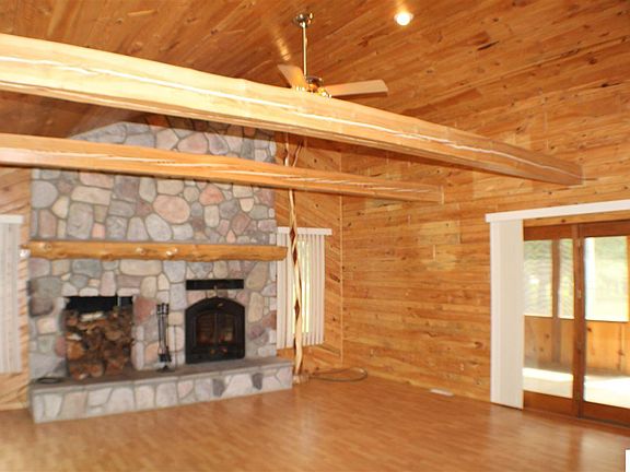 Cozy home with basement on 30+ acres. This 2 bedroom, one bath home has a wood-burning fireplace, screened porch, and is set up for year round living. Enjoy all that nature provides with the wooded acreage. Nice detached garage to store all of your equipment and toys.