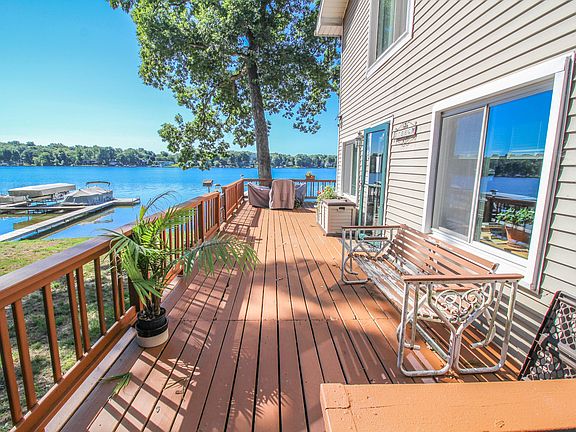 ENJOY THE PLEASUES OF LAKE LIVING IN THIS YEAR AROUND LAKE FRONT HOME WITH 108' OF SANDY FRONTAGE ON BEAUTIFUL ALL SPORTS PLEASANT LAKE. with panoramic lake views The exterior presents a spacious main level deck great for entertaining and composite decking on upper level for relaxing quiet times...soaking in the beauty. Steel sea wall and 7 section aluminum dock. Updated kitchen with soft close cabinets, quartz countertop and newer appliances. Gas fireplace in living room with bay window offering amazing lake views and natural lightening.Main floor bedroom and full bath with walk in shower and tile flooring