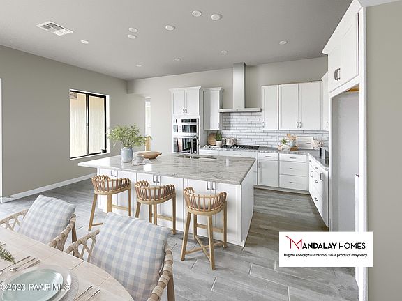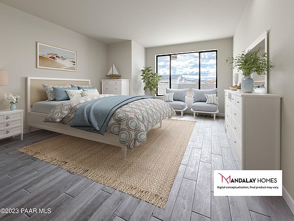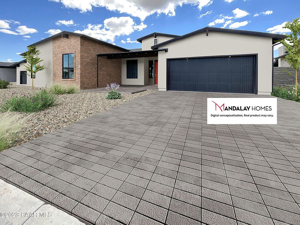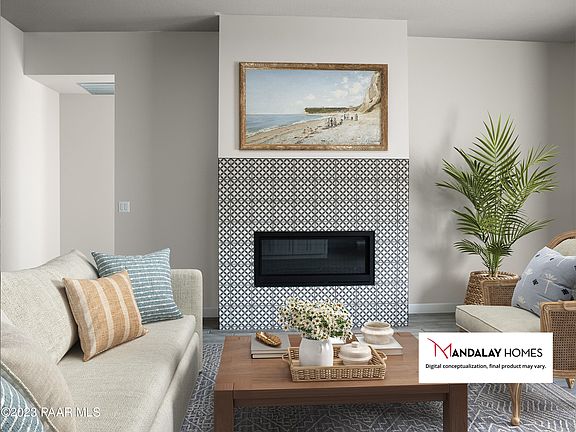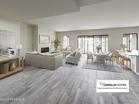 Perfect ''702 Plan'' new build with SOLAR by Mandalay Homes! This home features 10' ceilings in the great room and dining, gourmet kitchen, and fireplace to create a stunning great room. Energy-efficient 3 bedroom 2 bathrooms & Den/Dining (or a possible 4th bedroom) plan. Owner's suite features a pop-out sitting room, large walk-in closet, and popular walk-in shower. 3-car tandem garage for all your outdoor needs. VIEWS from your backyard will have outdoors and enjoying the perfect weather Prescott has to offer. Interior finishes are beautiful! The kitchen features a walk in pantry and white cabinets with gorgeous granite countertops. Enjoy low utility bills & eligible tax rebates.