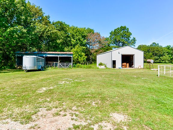 Quaint property nestled in the trees on a paved road. One owner home waiting for a new occupant. Lots of pasture for cattle or horses. 2x6 exterior walls, in ground seaside kidney shape pool and several outbuildings. Seller occupied one of the buidings while building this home. It would need to be reworked but could be possible again. This building is roughly 30x30. 20x40 lean to and 30x50 shop with 15' sidewalls. Storm shelter and outside furnace as option. Home is open floor concept with craft/sunroom. Nice wood floors, large master with private bath. There is a total of 39.58 acres (per survey). Seller would sell with corrals & waterer for a total of 390K. All electric home (ozark electric) Close to town on paved road but plenty of privacy. If you are wanting to move to the country and not build this could be for you.