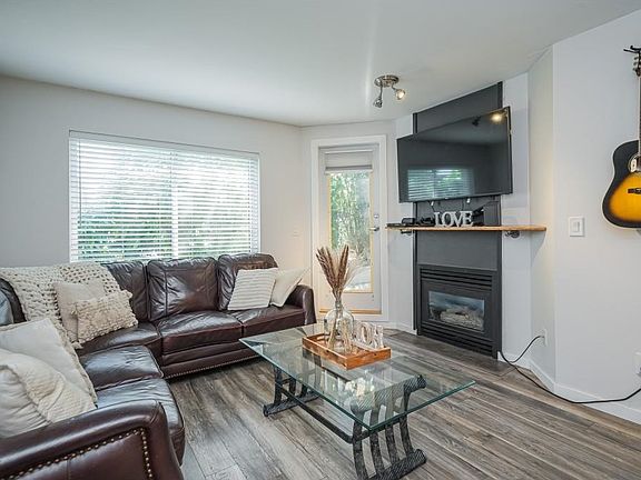 College Court, Completely Rain Screened building, updated 2 BR, 2 bath unit with new kitchen & baths, new shower, toilets, light fixtures & hardware. New, easy-care laminate, flooring. Open floor plan with cozy gas fireplace in the living room (gas and hot water is included in the strata fees) Private Patio. In suite laundry. Excellent location in Langley City, Transit is right at your door, Twins Coffee and an easy walk to the University. The large sized bedrooms allow for easy furniture placement. 2 pets allowed with dog or cat up to 44 pounds. Includes underground parking stall and secured bike storage in UG. Rentals allowed.