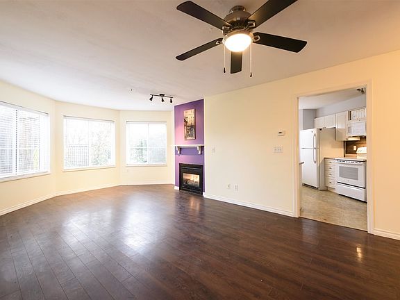 This large 2-bed, 2-bath ground floor corner unit is a perfect starter home for first-timers, young families, or downsizers. Large patio with access to dog-run for all you dog-lovers! Newer appliances, in-suite laundry, loads of storage & underground parking. Easy access to Kwantlen Polytechnic University, Costco, shops, restaurants, sports complex, and major routes. Natural gas fireplace does most of the heating and gas is included in the strata fees. Pets allowed (up to 2) max weight for dogs 44lbs. Rentals allowed (maximum 8 units). 1 parking stall included.