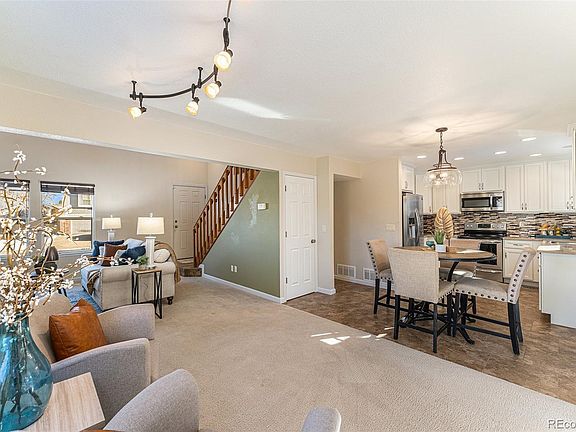 Welcome to this meticulously cared for Trail Ridge home in the highly sought after Cherry Creek school district! This 2-bed, 3-bath, 2-story home with a loft seamlessly blends comfortable living and timeless elegance. Vaulted ceilings and the open concept layout amplify the spacious feel, and the updated interior harmonizes style and functionality. The versatile loft offers endless possibilities, whether converted to a 3rd bedroom, utilized as a home office, media room, or additional living space – the choice is yours. Step outside on the covered back patio with your drink of choice to enjoy the cool morning breeze or to unwind after work. The unfinished basement presents a clean slate of creative possibilities for your personal touch. Conveniently located near E-470, shopping, and is just steps away from walking paths leading to beautiful Pioneer Park. Newer windows, Custom lighting, and more! Schedule a showing today and envision yourself starting 2024 off in your new home!