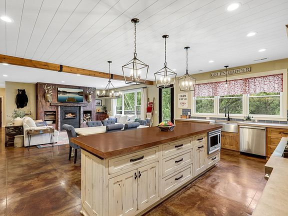 Discover the epitome of comfort and style in this expansive one-level home, thoughtfully designed to meet all your needs. Enjoy the luxury of warm, comfortable floors throughout the home, thanks to the radiant in-floor heating. The durable and stylish stained concrete floors add a unique touch to the home's aesthetic, while the beautiful gas fireplace in the living area provides a cozy spot for chilly evenings.