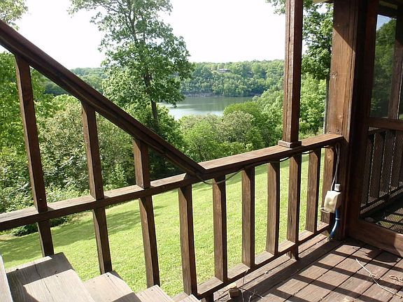 LAKE HOUSE WITH YEAR ROUND VIEW!!! That says it all. If you are looking for a permanent or vacation house within 5 minutes of Jamestown Marina, and close to restaurants, shopping, groceries, churches, schools, and joins Army Corp of Engineer land, then look no farther. This home has so many special features it would be hard to list them all, but basically we have a main level with two bedrooms, full bath, living room with fireplace and a huge windows to view the lake, kitchen/dining combo, sun room and a wrap around deck that has an outstanding view of Lake Cumberland. Upstairs there is the master bedroom, full bath, and sitting area. The partial basement offers a kitchenette with dishwasher, refrigerator, range, and another full bath. The basement also has a deck area that is screened and covered offering again a spectacular view of the lake without worrying about insects. Property is well landscaped, an attached 2 car garage, central heat & air, city water & much more!