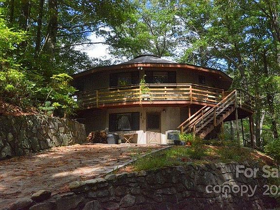 Lake Santeetlah! Less than a mile from the marina. Two level unique round house with a private setting. Over 180 degree view of the lake with layered, long range mountain views. Lower level has new sheetrock, bathroom, and refinished concrete floor. Deck goes all the way around the house. Minutes from the Tail of the Dragon, and Cherohala Skyway. Paved to the door!