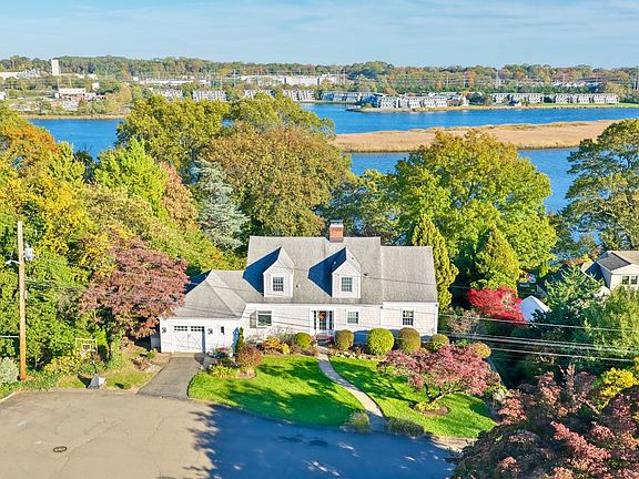Perfectly set at the end of a quiet cul-de-sac overlooking the Housatonic River, this beautifully reimagined Cape offers timeless craftsmanship and elevated design. Every detail of this home has been thoughtfully curated, from custom cabinetry to gleaming hardwood floors and designer lighting. The heart of the home is the beautifully appointed kitchen, featuring a large marble island, wine fridge, stainless steel appliances, pantry, and built-in workspace. A cozy office sits beyond a French door, while the mudroom with custom storage keeps daily life organized. The dining room opens to the deck and flows to a living room with a striking fireplace and walls of windows framing sweeping river views. Enjoy morning coffee from the balcony as the sun rises over the water. 5 bedrooms and 2 full baths offer flexibility, including 1st and 2nd floor primary options. The 1st floor features 2 bedrooms and a spa bath with radiant heat and a steam shower, while upstairs includes 3 bedrooms, a full bath, and a large bonus room ideal for a playroom or family room. Outside, is a beautifully tiered half-acre with space for entertaining and a path to the river's edge for fishing/ kayaking. Elevated above the floodplain, no flood insurance is required! Located minutes from Stratford's Paradise Green, beaches, dining, parks, and the Metro North train. This home combines craftsmanship, comfort, and riverfront lifestyle that discerning buyers seek, at a value rarely found along Connecticut's coast