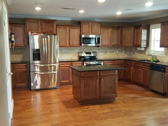 - Kitchen: Counter Tops-Granite, Cabinets-Stained