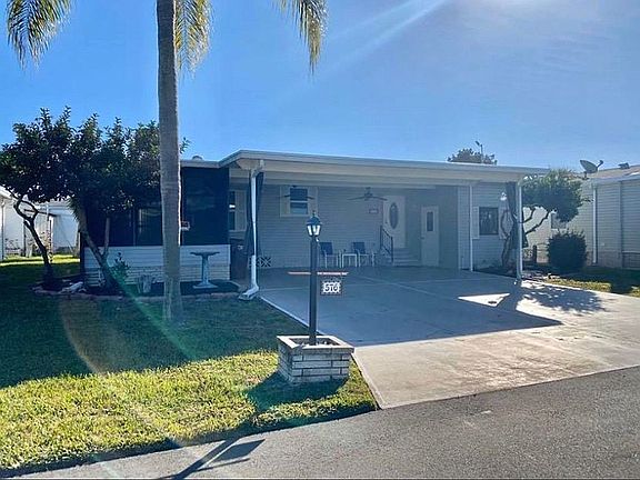 This beautiful 2 bedroom 2 bath home features an open floor plan and enclosed Florida Room with vinyl windows. Plant shelves above cabinets, built in desk, and breakfast bar are only some of the features that make this home seem comfortable. All appliances and furniture stay, including brand new dishwasher. Attached shed has air conditioning. Room for 2 cars to park side by side. Don't wait on this one!