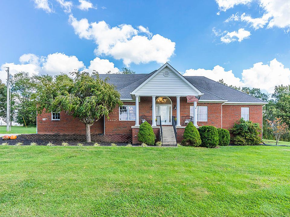Ever dream of experiencing life on your own private mini-farm conveniently located only moments away from Richmond and I-75? This splendid southern updated 4BR/3.5BA dream home on just over 14 acres is your chance to make this dream a reality! A welcoming covered front porch leads you to the open layout w/soaring ceilings, tons of handsome hardwood flooring + a flexible lay out to accommodate any lifestyle. Freshly renovated kitchen w/granite, stainless appliances, white cabinetry & adjacent hearth room w/fireplace & a sunroom perfect for any dining and living arrangement. Main level also boasts formal dining for holiday entertaining, office, guest suite w/adjacent BA + owner's suite w/private BA. 2nd level is roomy & bright w/2BR, BA + walk out storage space. A full unfinished walkout bsmt perfect for storage or endless potential for finishing. Picturesque level farmland is the perfect canvas for animals, recreation, or gardening!
