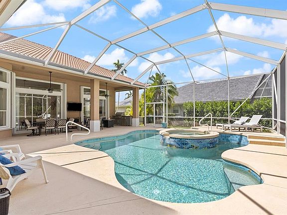 This is the lowest priced home in Binks Preserve! Desirable Grand Cayman model with Screened-in pool with spa, overlooking the picturesque Wellington National Golf Course on the fourth hole. Saltwater pool system with a new pool heater for year-round enjoyment. Many upgrades include crown molding and decorating molding thru out entire home. All tiled living areas and master suite. Spacious open floor plan w/formal dining, large open kitchen and family room, 3 way split plan, cabana bath, spacious covered patio. Remodeled guest bathrooms and cabana bath. Accordion shutters on all windows/sliders except for dining room (panels) AC replaced 4 yrs ago. Walking distance to ''A'' rated schools, perfect for families. Gated community with virtual guard for security and piece of mind.