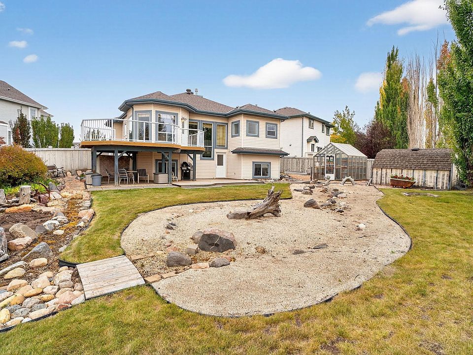 Check out this WALK OUT BUNAGLOW on an ENORMOUS 963sqm lot in Glastonbury. Tucked into a cul-de-sac with a walking path to the pond on one side and room for RV parking on the other side sits this 1388sqft home. Front 23ft long double garage for your pickup. Rear yard includes a shed, greenhouse, huge upper and lower deck, rock beds and space for hot tub, garden, playset and more….Inside the home provides 2 bedrooms + office on the main, vaulted ceilings, rear staircase to below and bright and cheery main living spaces. The lower walk out basement comes complete with 3 bedrooms and a huge rec room. The homes layout is fantastic and great for entertaining, large families visits and kids.