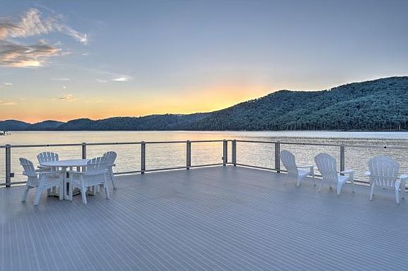Casual Tennessee Living on the Shore of Watauga Lake. This beautifully designed lake front home with an open floor plan is ideal for year round or seasonal living. All main rooms and bedrooms have stunning lake views,in addition to views of the Cherokee National Forest. The master bedroom suite is on the main level, with two additional bedrooms and two baths on the lower level. The study could serve as a fourth bedroom. There are hardwood floors throughout with heart pine floors on the main level. The kitchen counter tops were recently replaced with granite, in addition to new granite tops and new vanities in all baths. Enjoy the lake and mountain views from the deck, the large semi circular patio with fire pit or the additional lakeside patio. The custom built floating dock has a submersible boat lift, a motorized kayak lift for three kayaks and a 1000 square foot sundeck for summer entertaining. This special, move in ready home is less than an hour drive from Johnson City TN, Boone and Blowing Rock NC.   Â