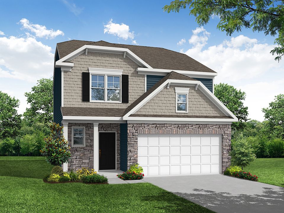 The Ellerbe is a two-story, three-bedroom, two-and-a-half-bath home with a spacious, open family room, kitchen, island, pantry, and a separate breakfast area. The second floor features all three bedrooms, including the primary bedroom, a laundry room, a hall bathroom, and a loft area.