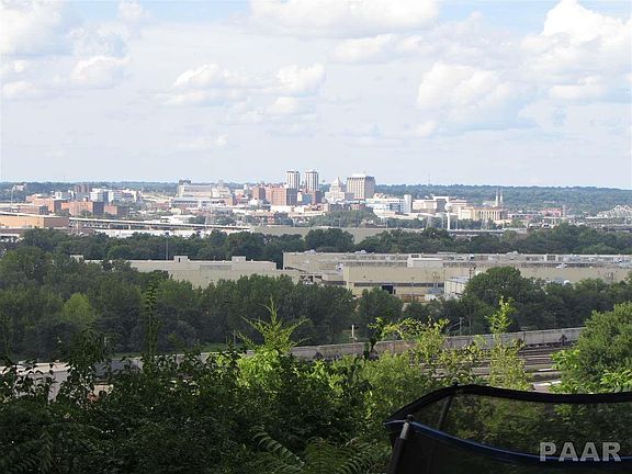 MILLION DOLLAR VIEW WITHOUT THE HEFTY PRICE TAG! This home has a beautiful view of the Peoria skyline and river! Set on 3 lots this adorable 2 bedroom home is nestled in the trees and features an updated kitchen, large living room, vinyl replacement windows, whole house was re-plumbed and bathroom was remodeled, main floor laundry, the garage was turned into a fun man cave or hang out room! Great for entertaining! Walk out to the back yard and you will be blown away by the view! Sellers watch the fireworks every year from their back yard! Appliances included with acceptable offer!