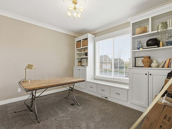 Free 1/0 rate buy down provided if preferred lender is used! Tucked away in the back of a quiet cul-de-sac, you'll find solace in this cozy, updated single family home! Located in a very sought after, family friendly subdivision, you'll never want to leave. Very meticulously cared for, upgrades throughout include: new paint, new carpet, new furnace (2025), crown molding, wainscoting trim work, updated light and plumbing fixtures, stainless steel appliances, granite countertops throughout, added built-ins throughout, and epoxy flooring in the garage. The main level flows freely with a large living room with a wood burning fireplace that is also piped for gas, an airy office with aesthetic and functional built ins, and an updated kitchen; while the bedrooms are privately nestled upstairs away from all the hustle and bustle. You'll be stunned at the massive primary ensuite featuring tray ceilings, separate soaker tub/shower, and walk in closet. The 3 other bedrooms are also a great size, with the option of the 3rd bedroom being a flex room for a game room/workout space/etc to perfectly suit your needs. Schedule a showing - it's even better in person! Square footage figures are provided as a courtesy estimate only. Buyer is advised to obtain an independent measurement.