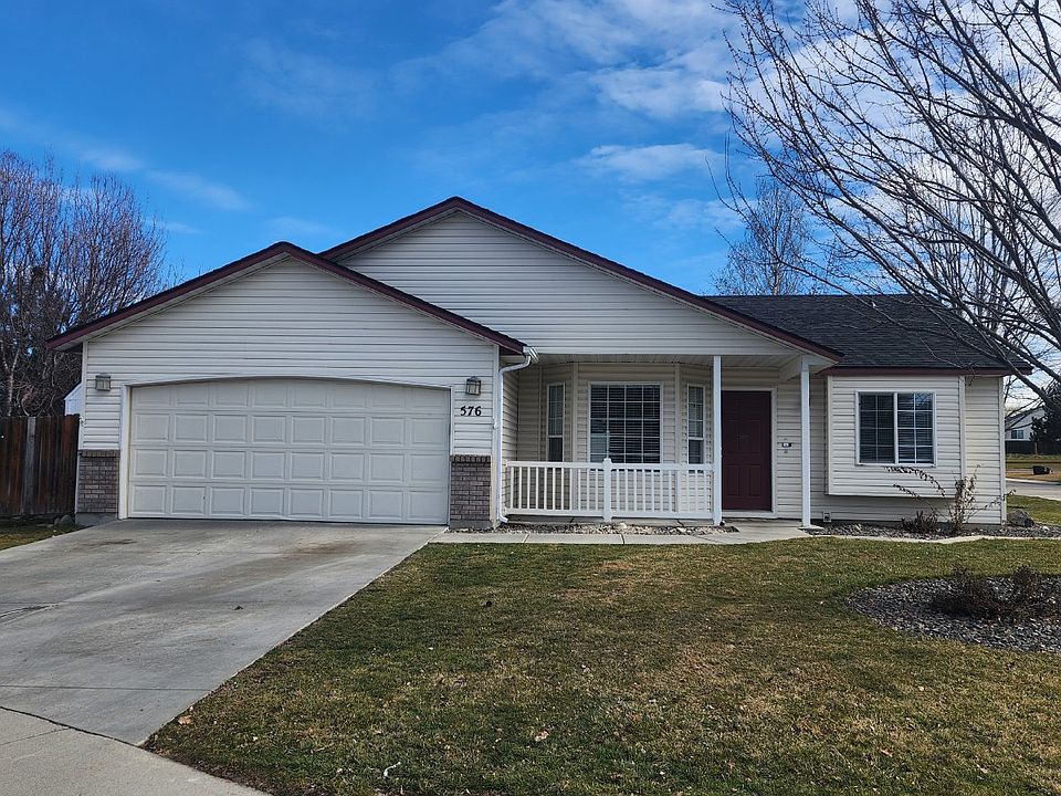 Seize the opportunity to live in this charming 3-bedroom, 2-bathroom home located at 576 North Meldgold Avenue in Kuna, ID. This property offers 1129 sq ft of comfortable living space, perfect for a small family or individuals looking for a cozy place to call home. The open floor plan allows for easy flow between the living room, dining area, and kitchen, creating a welcoming and spacious atmosphere. The master bedroom features an en-suite bathroom, providing a private retreat within the home. The fenced backyard offers a private outdoor space for relaxing or entertaining and a large storage shed. With its convenient location near schools, parks, and shopping, this home is ideal for those seeking a convenient and comfortable lifestyle. Don't miss out on the chance to make this lovely property your new home sweet home. Schedule a showing and experience the warmth and charm of 576 North Meldgold Avenue for yourself. Dogs allowed w/additional $300 pet fee & $25 monthly pet rent. ESA OK. One time $50 lease fee and $15.95 additional to monthly rent required for Renters Legal Liability Insurance No housing.