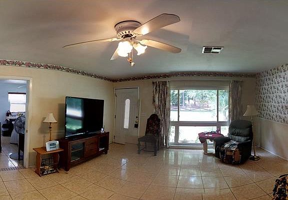 Conveniently located Florida ranch style home with three bedrooms and two bathrooms with a bonus room. Bonus room has sliding glass doors to the large Butterfly Garden. Tile flooring in all common areas and carpeted second and third bedrooms. Entering into the home you have a large living room . Kitchen is open nicely appointed with updated cabinets and counters with a french door fridge. Ceiling fans in all rooms. The workshop/shed is ready to be lined with work benches . Great area and close to Publix, shopping and entertainment. Call today Don't Delay