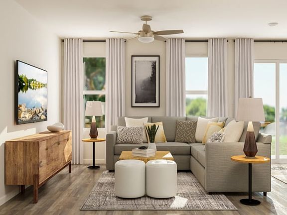 Welcome home to our Abernathy plan. This modern space perfectly blends comfort and style with open concept living throughout the large kitchen, family and dining areas. The kitchen comes equipped with stainless steel appliances, white shaker cabinets and granite countertops. The private owner's suite includes an ensuite bathroom with dual sinks and a walk in closet. The two additional bedrooms offer flexibility for family, guests, or a home office.