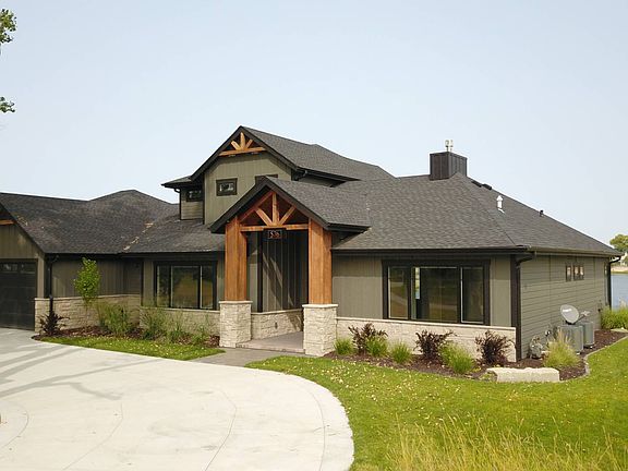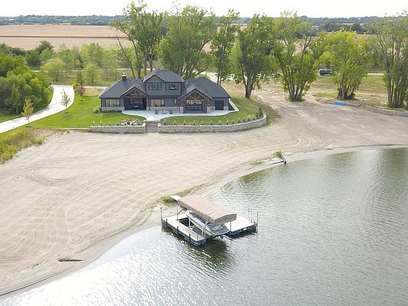Beautiful Malibu Custom Home waterfront property built in 2018 on gated community of Sandy Pointe Lake just north of Ashland, Nebraska. This home has exceptional style, craftmanship, attention to detail, and magnificent views of the lake and countryside. As you enter the home you will find an open concept with a spacious kitchen including top of line Jenn-Air gas appliances, large Cambria quartz island, and large butler's pantry. The main room is located off the kitchen and has cathedral ceilings and a beautiful stone floor to ceiling gas fireplace. Formal dining area is located off the kitchen with large windows viewing the lake and beach area. The bar/entertainment room is located on the main level in the back of the home with double sliding glass doors providing access to the covered back patio area. The bar has both a custom live edge wood countertop and beautiful granite counter tops, refrigerator, and sink. Conveniently there is a 1/2 bathroom off the bar which allows easy clean up and access to the back patio/beach area which doubles as a storm shelter. The laundry area is located on the first floor and has generous storage. There are three bedrooms on the main level. The master suite is located near the back of the home and has a spacious double vanity bathroom with walk in shower, large walk in closet, and access via sliding glass door to the back-entertainment area and lake. There is an additional two bedrooms on the main floor both with walk in closets that and access to the 3/4 bath. The top floor has the fourth bedroom as well as an additional bunk room both with access to a full bath. Also located on top floor is a workout room, sauna, and kitchenette. Large Pella windows and custom blinds throughout the home allow for exceptional views of the lake and countryside. In addition, this home has a heated three stall garage, with one double deep stall to store cars and toys with epoxy floor, high end utility area, hot and cold-water spigots, and floor drains. Amazing outdoor spaces do not disappoint and include covered patio area with retractable patio screen, additional seating areas, natural stone gas built in fireplace, wood burning fireplace, custom landscaping with underground sprinklers, and a large beach area. Whether you have a passion for boating, jet-skiing, riding on the ATV/UTV trails, fishing, or hiking, there is something for everyone. Along with the spacious beach your love of the water is made easier with a custom floating dock and air lift. This is a one-of-a-kind property provides amazing indoor and outdoor spaces. Thoughtfulness and attention to detail were not missed on this home. For your private showing please contact the listing agent.