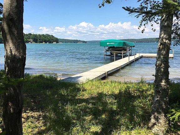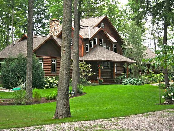Tucked into Walloon Lake's South Arm Bay and flanked by hundreds of feet of never-to-be-developed conservancy frontage, this property provides privacy, solitude, and an 'On Golden Pond' connection with nature not found in more densely built areas of the lake. While the location is central, with short boat rides to Barrel Back restaurant and Walloon Lake Country Club, it's not near any busy boat traffic lanes. The gorgeous André Poineau designed log home views the lake from acres of privacy, and the 150' waterfront building site with sandy shoreline can accommodate virtually anything you might add - from a guest cottage to a second large waterfront home. A tour is required to understand how special this property is.