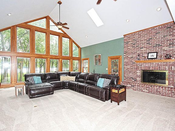 WOW! Be amazed by the 2 story great room with a wall of windows overlooking the expansive flat, wooded lake lot! Full walk out lower level with wet bar and 2nd fireplace. Could be a perfect in-laws quarters with full bath, bedroom and possible 7th bedroom. Absolutely perfect for entertaining. Remodeled kitchen with granite counters and new stainless/black appliances. 3 season room and deck off of the kitchen. New / newer carpet and paint in areas of this house. Dock with hoist. The bedrooms on the 2nd floor have large closets and play areas behind the closets. Guest suite with its own bath. GORGEOUS yard! Lake being dredged and deepened in this basin. Shed with dog pen area. Double laundry hookup on main floor. Separate laundry hookup in Lower level.