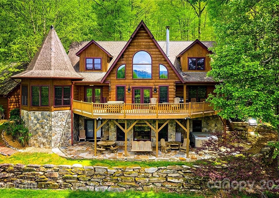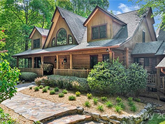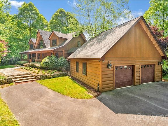 This spacious 5BR/4.5BA True North Log Home is one of a kind and a rare find. Centrally located between Asheville and Waynesville with year round accessibility. The magnificent lodge style home is pristinely positioned at the end of a cove with winding drive and park like landscaping with 2.75 acres of yard for recreation and gardens. Nothing was spared in the professional custom planning of this home. Main floor boasts oversized great room with soaring ceilings, floor to ceiling breathtaking stone wood burning fireplace, and huge windows to enjoy the Mountain views from. The custom kitchen features granite tops and island/bar, 6 burner cooktop, stainless appliances, and copper sink. The spacious dining room is open and surrounded with windows. Home includes two spacious bedroom suites and baths. One on the main floor and one lower level. Upper Floor boasts 3 guest bedrooms, full bath, and multi-use spacious loft. The lower level includes recreation room and den. A must See!