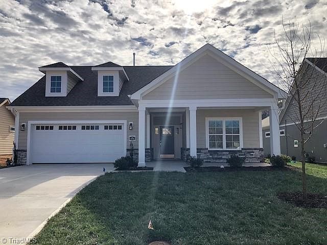 One of our most popular layouts, The "Portico" is an elegant, low-maintenance home w/2 BR/2 Baths, plus Den/Office, and minimal steps! The open plan features the kitchen central to the home, and provides space for entertaining and relaxing. The spacious owner's suite has a secluded Sitting Room, huge WIC, and bath with a floor-to-ceiling, tiled walk-in shower. The Kitchen, Dining, and Living Rooms surround a private courtyard flowing with natural light! Some of the finishes include arched openings, a fireplace, transom windows, painted cabinets w/rollout shelves, QUARTZ kitchen countertops, walk-in pantry, and SS appliances. Wood flooring in Kitchen, LR, DR, Den & hallways. The HOA takes care of yard work, irrigation, sidewalks & (future) walking trail. Fantastic Kernersville location, just south of Bus. 40; close to Target & Lowes plazas, dining, hospitals & parks. Call for a list of specifications!