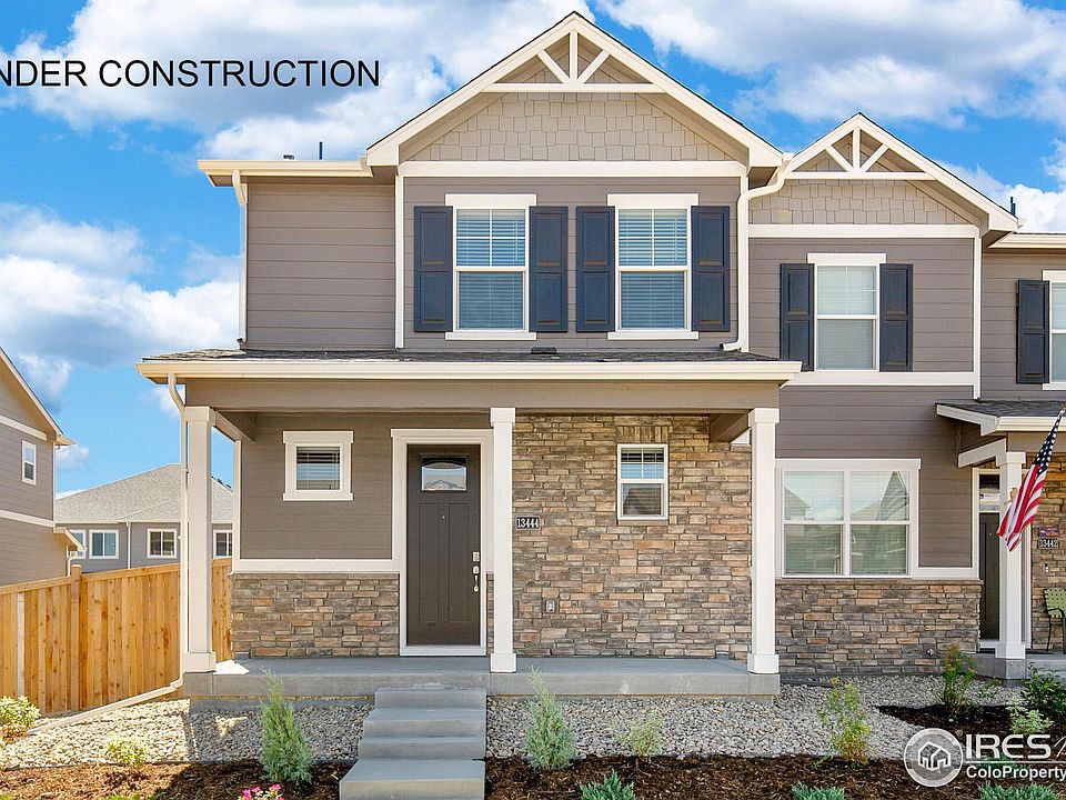 **Estimated delivery date: February** Welcome home to Revere at Johnstown Paired in Johnstown, Colorado! This stunning Muirfield floor plan is a 3 bed 3 bath paired home with a loft upstairs and an attached 2-car garage. Step inside and be greeted by the open-concept main floor, featuring a modern kitchen, dining area, and living room. The kitchen is equipped with a granite island and a gas range. A convenient half bath for guests adds to the functionality of the main floor. Upstairs, you'll find the generously sized bedrooms with ample closet space. The primary suite is a peaceful retreat, complete with an en suite bathroom featuring double sinks and an impressive walk-in closet. Laundry chores are made easy with the conveniently located laundry room upstairs. Enjoy the outdoors with the walking trails in the community, while the front yard and backyard landscaping with irrigation, sod, and rock are taken care of for you. Additional features of this home include A/C, a tankless water heater, and a smart home package. Nestled in the Front Range of the Rocky Mountains, Revere at Johnstown Paired offers a desirable location with easy access to I-25, shopping, dining, and abundant outdoor recreation at nearby parks, golf courses, and reservoirs. Don't miss out on this opportunity to own a beautiful home in a noteworthy neighborhood. ***Photos are representative and not of actual property***