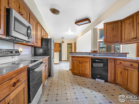 Twin Sisters Ranch paradise! Older home on 12+ level meadow acres with expansive view and no buildings in sight or lights to spoil it! This property has room for a large family and all your pets. Two driveways-one leads to the front door and the other to the attached garage. 3-stall barn for horses or llamas. Sunny and quiet setting only 22 minutes to Boulder. Home needs some work and is being sold "AS-IS". A blank canvas awaiting your dream finishes!