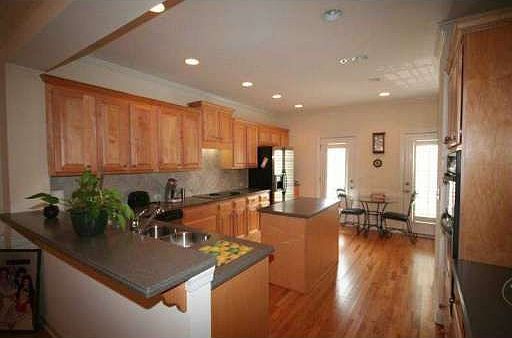 - Kitchen Features: Cabinets Stain, Pantry, Breakfast Bar, Eat-in Kitchen, Kitchen Island, View to Family Room, Solid Surface Counters