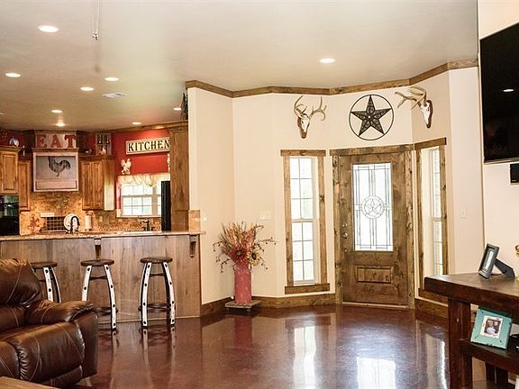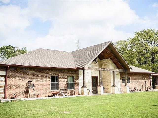 Out-of-the-Way in East Texas. This 1-owner home evokes a rustic feel but has a classy touch! This custom built ranch home boasts of granite counter tops, roll-out kitchen drawers & spice. German Beechwood cabinets, poured marble sinks, recessed lighting! spray foam insulation - split layout & bonus room upstairs!