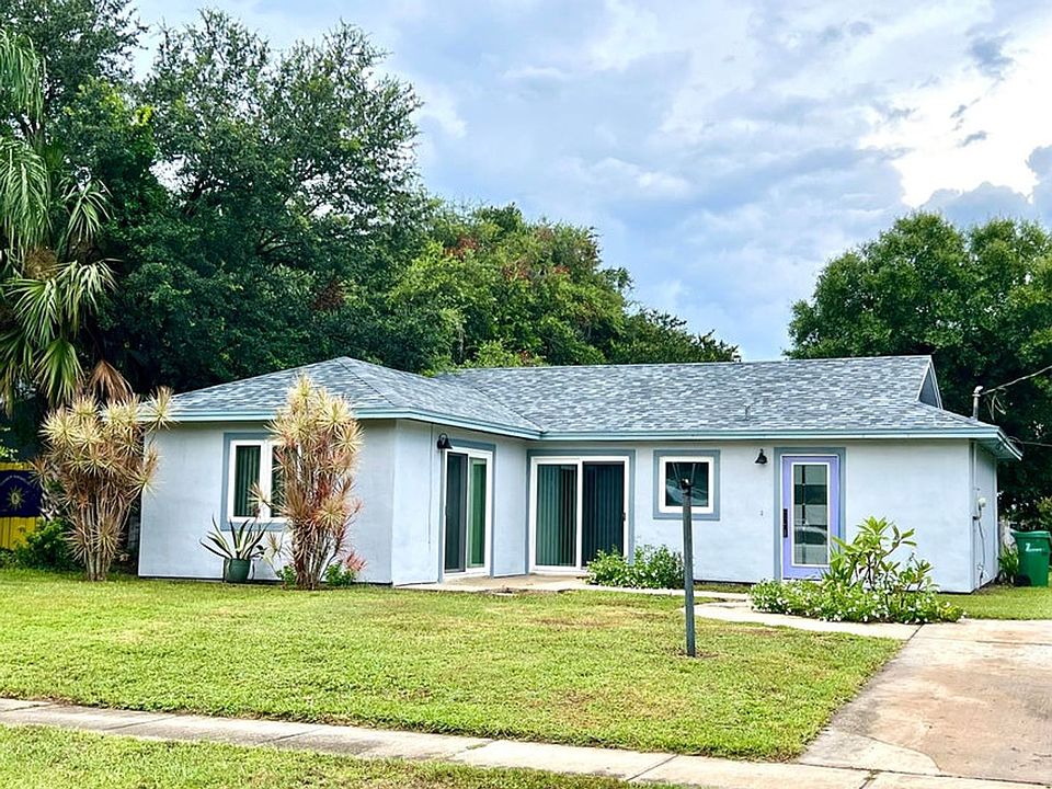 Charming 2 bedroom, 1 bathroom single family home on a large lot in a desirable and quiet area of Port St. John. The kitchen has new stainless steel appliances and there is a separate dining area that opens to a front patio area. From the spacious living room is a large slider to a new screened back porch. Windows and sliders are hurricane rated. Both bedrooms are spacious and the primary bedroom has a slider to the front patio. There is a coordinating shed in the large back yard and plenty of space to park a RV or boat. This home has been freshly painted and cleaned for a quick move in.