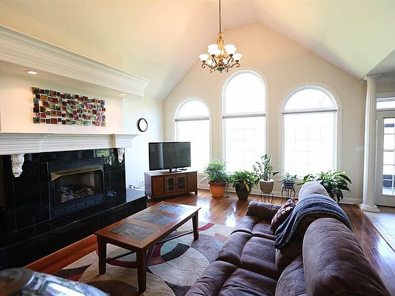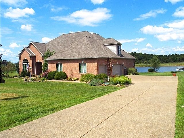 Picture perfect and waiting for you! Situated on 2.5 acres with shared lake! You are sure to enjoy every bit of the day with spectacular sunrise and sunset. Free flowing open layout is sure to work great for small family gatherings to large family reunions. Grand entry with large foyer, cathedral ceilings, open layout, beautiful triple palladium windows as you enter , plus areas with double trey ceiling and extensive crown molding. . Hardwood floors have just been refinished to look like brand new, 21 inch tile, 3 full bathrooms all with double vanities. Kitchen and almost all the woodwork has been freshly painted. Tile sealed and stained for fresh new look as well. Split bedroom design with 4 spacious sized bedrooms, gourmet kitchen, formal dining, large breakfast nook, and nice laundry room which is connected to the master bedroom closet. 9 foot ceilings with cathedral in the grand entry and great room. Beautiful kitchen showcasing Frosted champagne Kraft Maid cabinetry with center island and Kitchenmaid appliances. Beautiful views from the entire back half of the home which include the : great room, breakfast nook, enclosed back porch, master bedroom, and 2nd bedroom. Seller is currently using 2nd bedroom as an art room which looks out to the lake for true inspiration. Bonus room/4th bedroom with full bathroom are situated above the garage and would be great for an in-law suite. 3 car attached side load garage. Many more amenities. There is no association fee and pole barns are allowed.