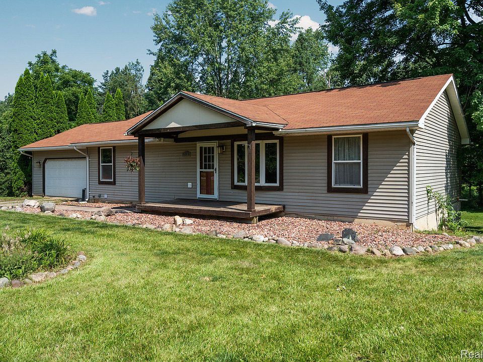 Welcome to 5670 Mason Road. This is a great open floor plan ranch home located on 2.1 acres in Howell Township. Less than 4 miles to the expressway for easy commutes, and close to stores and town for conveniences, but with a bit of country living. Sit on your front porch and enjoy the nice yard, before you walk into a vaulted great room with wood flooring, a large kitchen with plenty of cupboard and granite counter space, island seating and room for a nice dining room. Then, you can walk out to the back deck, from the great room where you can relax, with mature trees and landscaping for privacy. Back in the home, enter into the double doors open of the primary bedroom suite that features 2 walk in closets and a nice size primary bath w/shower and soaker tub. Split floor plan is a plus, with a 2nd bedroom and full bath on the other side of the home. There is an entryway room from the oversized garage with first floor laundry and a door from the garage to the back deck as well. Lower level is finished with a 3rd bedroom, walk out access, full bath and a separate family room. (it will need flooring if desired). Call today for your private tour.