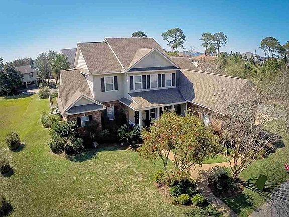 If you dream of Inter-coastal views, the gentle breeze that comes with living close to the water, and the security of a privately gated island...this is the home for you!!Among palm trees, azaleas,a lovely bottle brush tree, a tulip tree and more....the curb appeal alone sets the tone for the opulence of this incredible two-story home.The grand entryway complete with a patio to sit outside and watch the days go by creates the feeling of "coming home." Walking through the doorway...pillars, real hardwood floors, crown molding, and an open floor-plan grace the stage of this custom-built home. Every detail was thought of and no expense was spared!From the formal dining room the home flows into the family room complete with modern built-ins, a gas fireplace, and elegant light fixtures. The home then flows into the breakfast nook and beyond to a sitting area with yet another fireplace perfect for those cooler North Florida nights. Granite countertops, stainless steel appliances, breakfast bar, a 5-burner electric stovetop, and real wood cabinets grace the kitchen...this kitchen is begging for your next culinary masterpiece! The master suite is large and luxurious complete with a large, deep tub for soothing baths, dual vanity, separate shower, and 2 walk-in closets. Up the stairs brings 3 other bedrooms AND a bonus room, as well as a niche for a home-office with built in credenza...SO much space! SO much luxury! Each bedroom is elegantly appointed and views of the Inter-coastal waterway take your breath away!Gliding out the back door is an experience....the expansive screen enclosed Florida room keeps the mosquitos away for pool parties, while the sound system, outdoor gas hook up, in-ground pool, and numerous seating areas on the patio create a vacation setting for your very own home. Check out this opulent home and truly experience the heartbeat of Innerarity Island!Extras:Home has massive storage attic, lighted workbench in garage, & hurricane shutters.