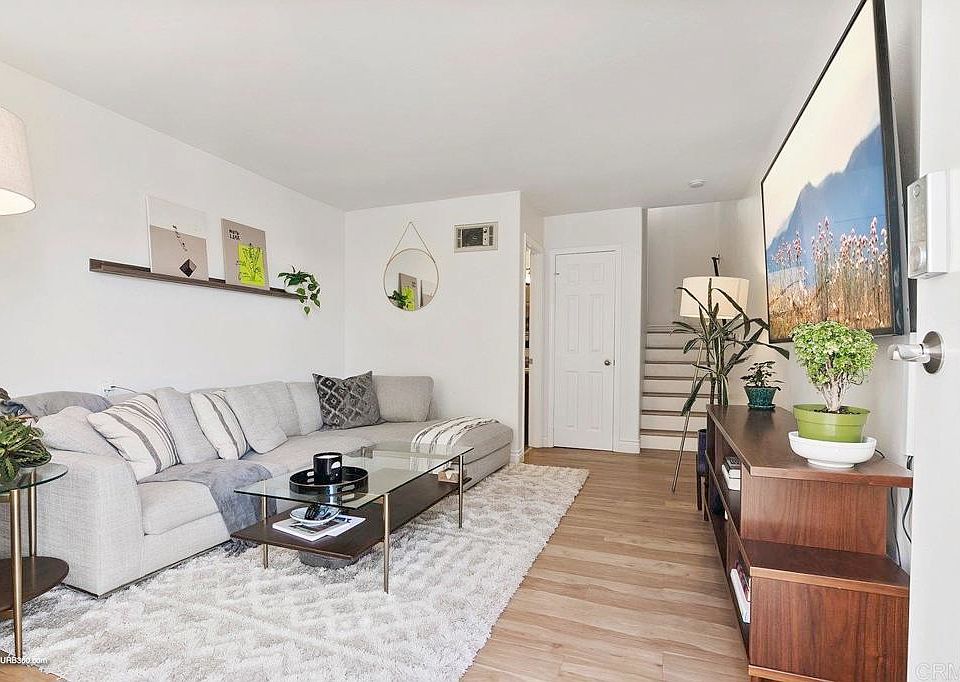 Step into this beautifully updated and well maintained townhome, centrally located near University of San Diego. Embrace the charm of this, VA approved, 5-unit complex, where the majority of the units are owner occupied, offering a sense of pride in ownership and low HOA dues. Upon entering, revel in the newly installed vinyl plank flooring that spans throughout, complemented by upgraded baseboards and neutral paint colors, creating a modern and inviting ambiance. An updated half bath is conveniently positioned off the living room. The eat-in kitchen, just a few stairs up from the living room, has undergone a stylish refresh, featuring stainless steel appliances, a new refrigerator, and freshly painted cabinets adorned with trendy hardware. The new, chic backsplash adds the perfect ouch of sophistication. Ascend a few stairs to discover the living quarters, where a full bathroom conveniently serves two bedrooms, one of which has a walk-in closet and the other with closet doors that have been intentionally removed to create more space. Enjoy the luxury of in-unit laundry and the convenience of a designated carport space. Situated mere minutes away from a plethora of shopping and dining options, Mission Bay Park, beaches, Tecolote Canyon, and the YMCA, this residence offers countless attractions and activities to enhance your living experience.