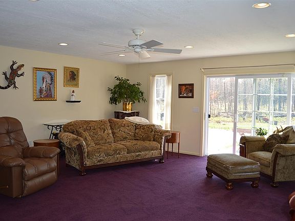 Secluded upgraded very charming and relaxing home with fresh paint, perfectly decorated. Just walking into the door it will make you feel like "this is home" instantly. Covered front porch, spacious but quaint living room with gas fireplace. Kitchen dining area is separate from living and family room. Upgraded kitchen opens to family room to watch the wildlife and beautiful pond. Many unique features with lots of storage and nice appliances. Laundry room off of kitchen/office area. 3 beautiful bedrooms, 2 bathrooms and large master suite. A total of 47 acres with 7 being across the road. Carport is close to home, 2 car detached garage and additional little cabin for storage is a bonus! This is a great buy with possible land contract terms with 20% down!