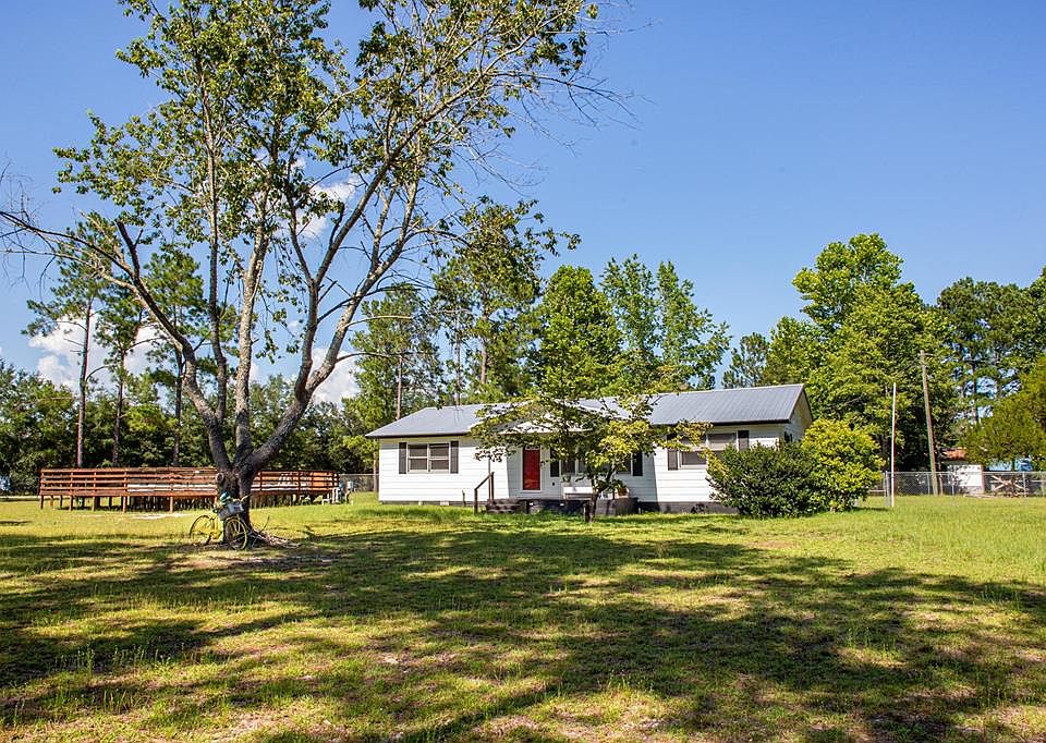 Cute home with many updates. The large back porch has built in benches and plenty of space for entertaining. Once inside, you'll find that the great room and dining room's laminate flooring and great lighting make it feel extra spacious. The kitchen has a great walk in pantry. The home features 3 bedrooms and 2 bathrooms. The guest bathroom is complete with a vintage furniture bathroom sink console. The fully fenced front yard has a huge semi inground pool with an extra large deck. The corner lot offers a drive thru style driveway, that is perfect with the 6 car carport.
