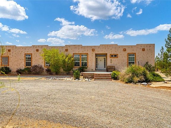 Looking for an Adobe Style home - this modular home is for you! Spacious single story 2318 square foot 4 bedroom 2 bathroom home. Formal living and dining room, open to kitchen with center island and informal dining area. The kitchen has nice pantry, ample cabinets and counters and is open to the family room with ceiling fan and sliding glass door to back. The master suite is huge with massive walk in closet, attached master bathroom with dual sink vanity and separate bathtub and shower combination. All the secondary bedrooms are on the other side of the home from master bedroom. The three secondary bedrooms have spacious walk in closets with ceiling fans and share a guest bathroom with large vanity and bathtub/shower combination. There is an indoor laundry room which includes washing machine and dryer with cabinets and door for access to back yard. 2 1/2 acres with half the lot fenced. Private well, detached 2 car garage with workshop. Horse property.