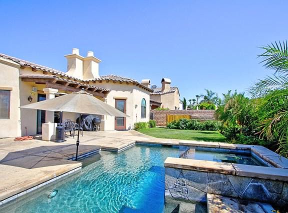 Welcome to Santa Rosa Trail, a gated community of 33 well maintained homes. This well designed home of 2,659 sq. ft., offers 4 bedrooms and 3.5 baths, which includes a private, detached casita. Amenities include a gourmet kitchen featuring granite counters, spacious island, built in stainless steel appliances and pantry. This popular open floor plan offers high ceilings and grand fireplace in the spacious great room. Luxury awaits in the master retreat, featuring a large walk-in closet, fireplace and en-suite bath. The good life continues outdoors in the great outdoor living space with large pebble tec pool and spa. Three car garage, low HOA dues and near premium Golf Courses and the Polo Grounds.