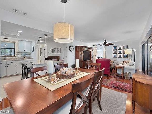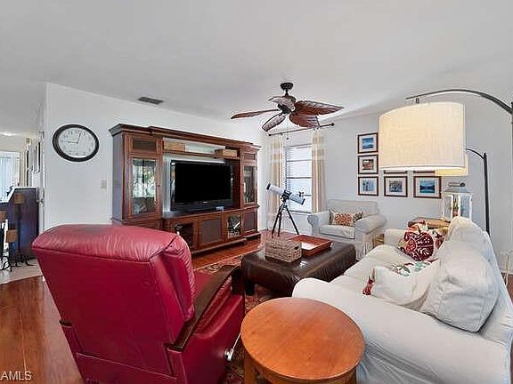 NEW Lower Price! Seller Motivated Welcome to Whiskey Creek Village Green a 55+ Community with 3 Bedrooms, 2 Bath, and 2 Car Garage with over 1600 square feet of living space. This Villa invites you to enjoy those 55+ years by walking to the community pool, playing golf every other day, take short drive to the beaches and downtown Fort Myers. NOT in Flood Zone so no need for flood insurance. The HOA is a LOW FEE and ensures your roof for you as well as taking care of landscaping/lawn care and includes the Cable. The Villa also has a wet bar, laundry in unit with tub, gorgeous flooring, split bedrooms, with primary bathroom having new flooring and new shower, spacious open kitchen area with granite countertops and eat in island area, formal dining room and living room that look out to a peaceful landscaping area. Paver driveway and pavers in the entryway, Hurricane Shutters in lanai and plenty of storage space for those trying to downsize. The unit is offered negotiable on the furnishings, so no need to look any further! Call for your private showing today!