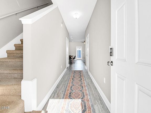 CURRENTLY UNDER CONTRACT, SELLER WILL CONSIDER BACKUP OFFERS. Discover this delightful 2020 built, 2-story townhome in Panama City, FL! The floor plan includes all 3 bedrooms, 2 bathrooms, and the laundry room upstairs. The open-concept living room, dining, and kitchen are downstairs with another half bath! This home also features a white vinyl fenced backyard, with exterior access for a quick walk to the community pool. Meticulously cared for, it boasts the convenience of an HOA covering lawn care, exterior maintenance and insurance, trash services, and access to the pool and common areas. Embrace a stress-free lifestyle in this charming neighborhood, which is a quick walk to many amenities and restaurants, or a easy commute to popular shopping, downtown Panama City, and Tyndall AFB. Buyer to verify all information and measurements.