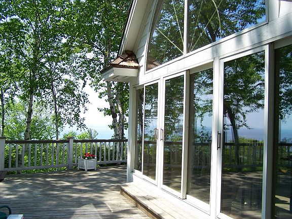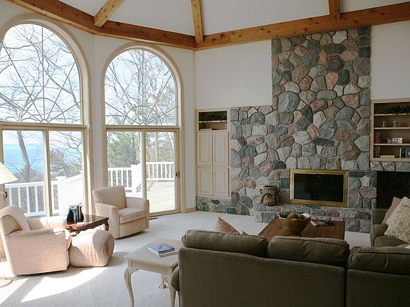 Bright and beautiful 4 bedroom home with spectacular views of Lake Michigan in a peaceful wooded setting. Large main floor master suite, marble and wood floors. Wonderful stone fireplace and vaulted ceilings in the living room. Studio apartment, 2 rec rooms. Beach access, tennis courts, ponds, secure private entrance in Traverse Trace close to Harbor Springs.