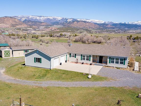 Beautifully located home in Collbran! 3 bed/2 baths, 2220 sq. ft., 2 car attached garage, 1 car detached garage. New 28 X 14 shed and 16 X 10 shed in 2021 on 8.67 acres. Spectacular 360 degree views, absolutely beautiful and peaceful. This home offers open concept with 25 X 18 living room, family room, split bedroom design, large windows for beautiful views. Kitchen with newer stainless steel appliances, including Kitchen Aid gas cooktop. Spacious Master Suite, nicely remodeled 2nd bath. Don't miss this opportunity! You will love this home. Irrigation runs with the property. New roof in 2022.
