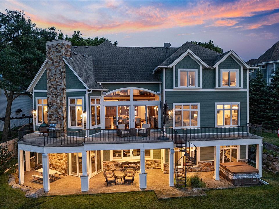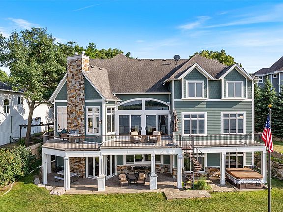 Enjoy paradise at this exquisite Lakefront Estate with panoramic NW sunset views of Lower Prior Lake. Embrace the serenity and beauty of 106' of sandy level lakeshore living Every day. The luxurious interior boasts high end finishes, premium materials, and exquisite craftsmanship. When you step inside you will be met with the perfect blend of opulence and comfort. The allure of this property extends beyond the walls, inviting you to indulge in the great outdoors and its endless recreational opportunities. Enjoy the sun on the deck or retreat to the shade, on your paver patio, and relax at the indoor/outdoor bar. Play yard games in the grass or lounge in the sand during the day, coast along on a sunset cruise, and end the day with the perfect lake bonfire under the stars. Indulge in the quintessential lakeside lifestyle and create unforgettable memories. Don't miss the chance to own this extraordinary gem. Discover the unparalleled beauty and luxury that awaits you. Check out the video