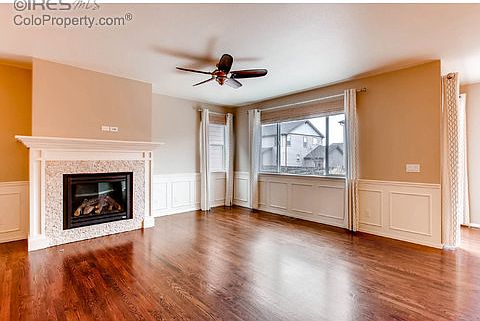 You'll love this immaculate better-than-new home in Timnath Ranch! Beautiful, open floor plan, with lots of natural light. Upgrades throughout including hardwood flooring, granite, high end SS appliances and specialty tile in kitchen & baths. Upper level laundry, loft area, and 3 bedrooms including the master suite w/a huge walk-in closet. Main floor office w/ French doors & unfinished bsmnt. Large custom patio perfect for entertaining. Neighborhood w/parks, fitness center, clubhouse & pool!
