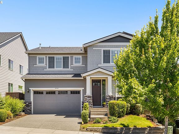 Immaculate home in Bethany Ridge with stunning views on all levels. This light-filled residence offers over 4,000 sqft of living space, featuring 5 bedrooms, 3.5 bathrooms, and a versatile bonus room. Gourmet kitchen boasts a granite island and countertops, a walk-in pantry, and stainless steel appliances. Elegant wood flooring graces the main level. The spacious owner's suite is a true retreat with a vaulted ceiling, double vanity, soaker tub, tile shower, and a walk-in closet. The lower level includes a bedroom, full bathroom, and family room, perfect for guests or multi-gen living. Painted deck in the back overlooks a beautifully paved backyard, providing an ideal setting for outdoor entertaining. Luxurious window coverings ($7K) and fully paid-off solar panels ($16K) add to the home's allure. All appliances are included. Top-rated schools, Jacob Wismer/Stoller/Sunset. Washington County property taxes. HOA maintains the front lawn.