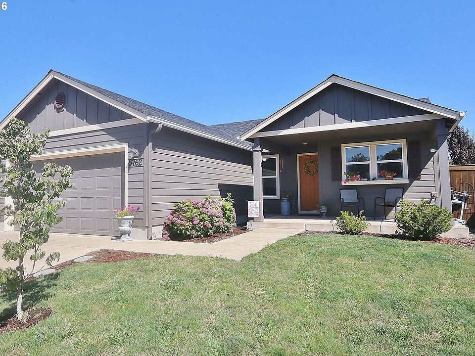 Single-level, 2010 built home in nice Thurston area. Perfect for 1st time buyers or downsizers. 3 bdrms, 2 baths, high ceilings, recessed lighting, forced air gas heat, central a/c & vinyl windows. Spacious living room w/dining area & slider to nice covered patio & beautiful fenced yard w/sprinkler system. Kitchen offers plenty of cabinets and counter space. Master bdrm has private bath with double sinks. Attached 2 car garage.